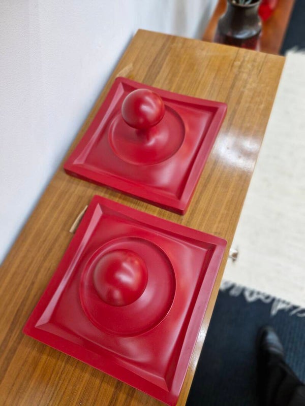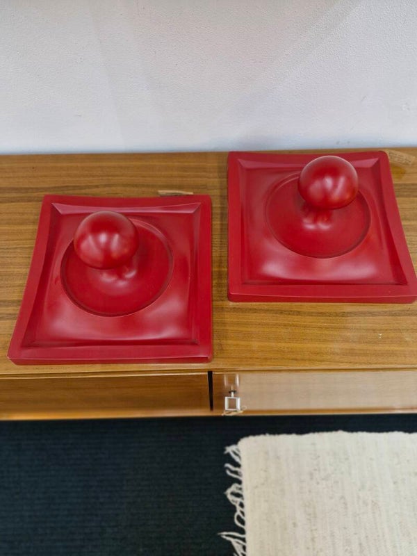 Fantastische blikvangers deze twee rode bolvormige kapstok haken uit de jaren 70. Exemplarisch voor het space age tijdperk, in uitstekende conditie en enorme blikvangers in je interieur. Ze zijn zowel los als samen te koop. Prijs is per stuk.