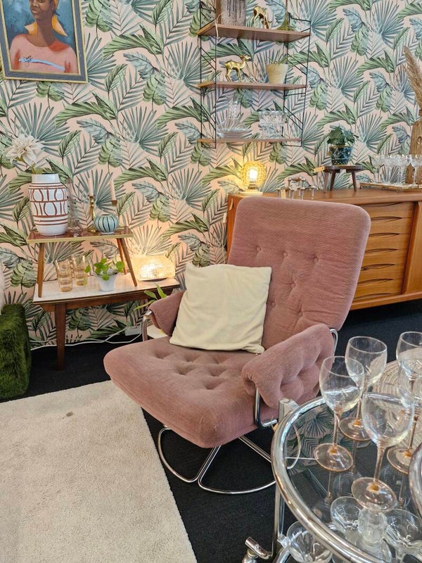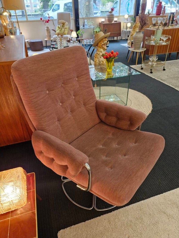 Vintage fauteuil chroom met oudroze ribstof 70s