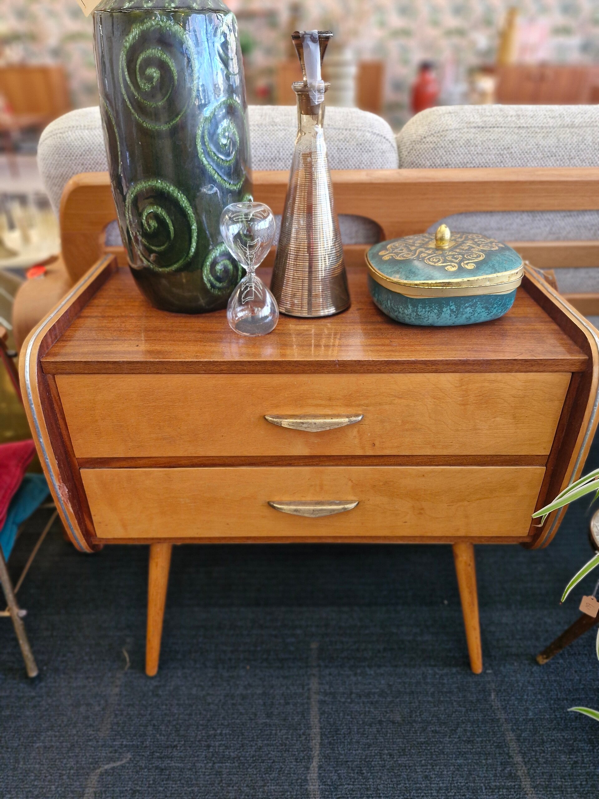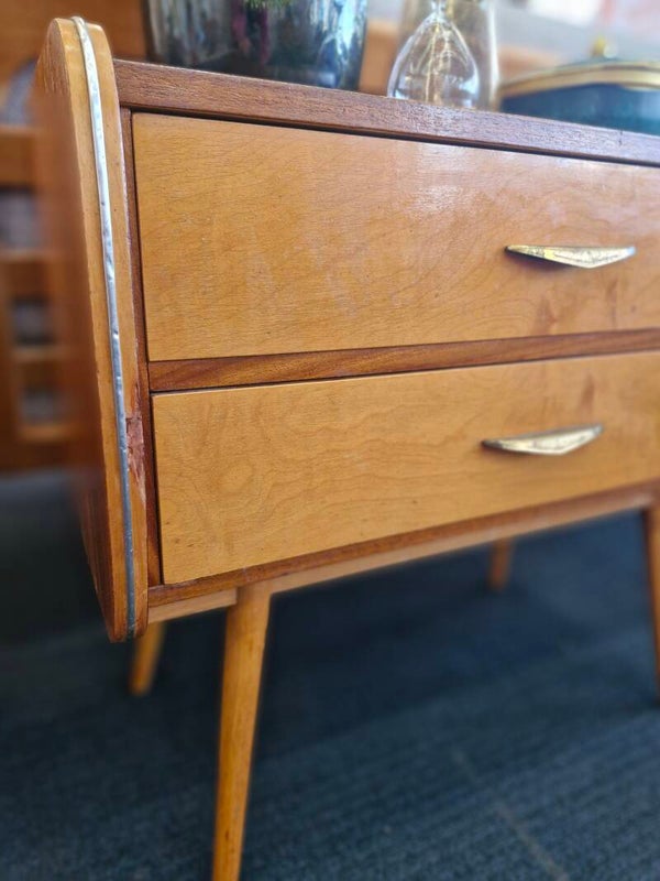 Mooi vintage kastje met twee lades op ronde pootjes