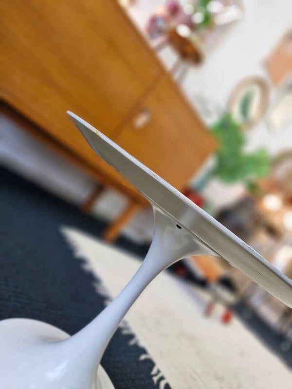 Prachtig bijzettafeltje, type Tulip rond wit jaren 70 space age geinspireerd op de iconische Saarinen Tulip table van Eero Saarinen voor Knoll. Mooie afgeronde rand. In uitstekende vintage conditie.